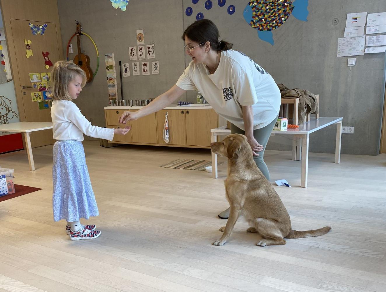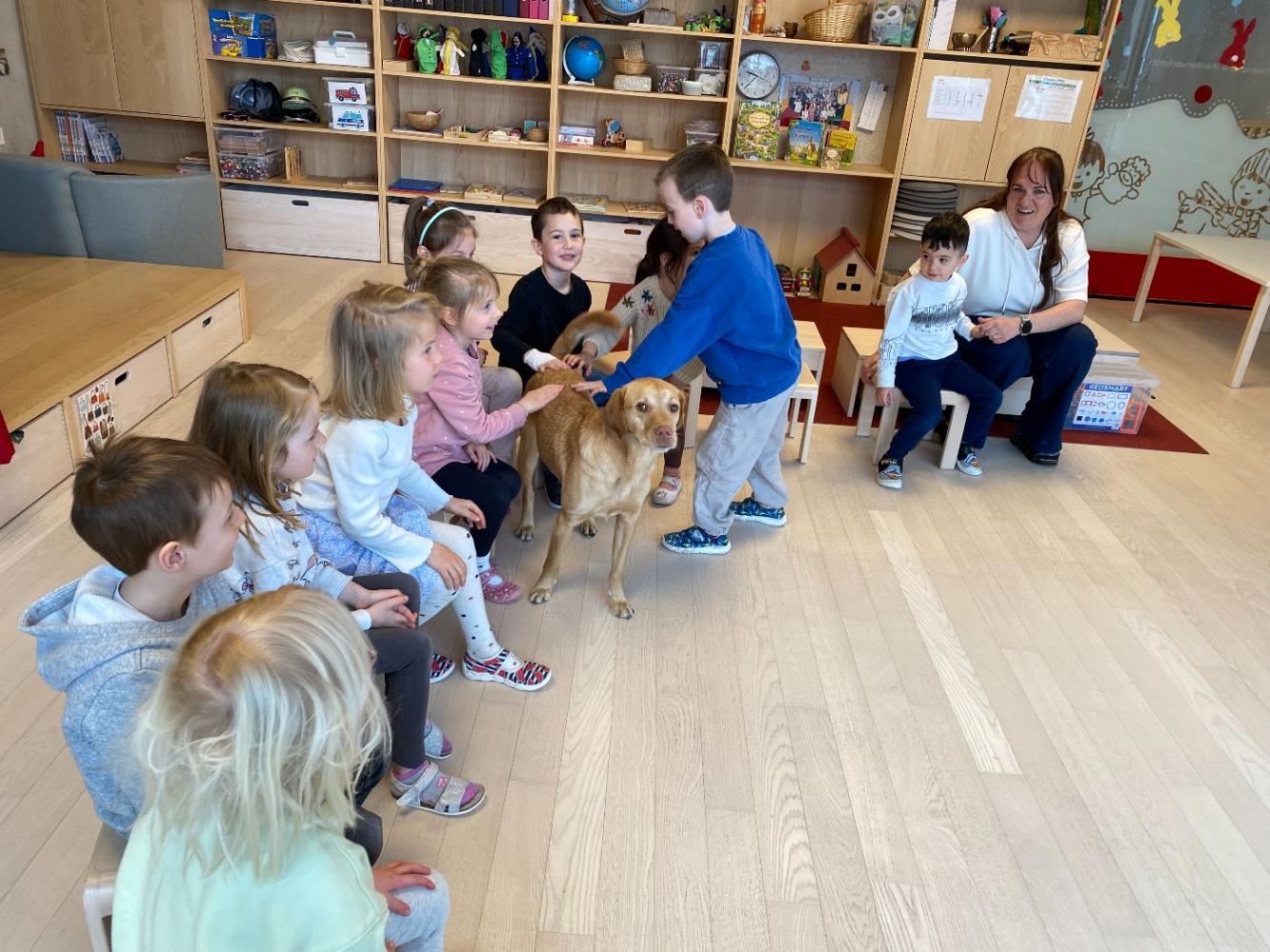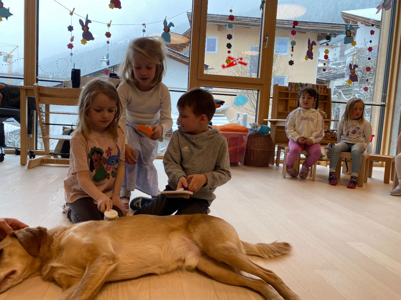 Der Therapiehund Samu besuchte gemeinsam mit seiner stolzen Besitzerin Eva den Kindergarten. Ziel dieser Besuche ist es, den Kindern den richtigen Umgang mit Hunden näherzubringen. Dabei lernen sie nicht nur, wie man sich gegenüber einem eigenen Hund verhält, sondern auch, wie wichtig ein respektvoller und vorsichtiger Umgang mit fremden Hunden ist.