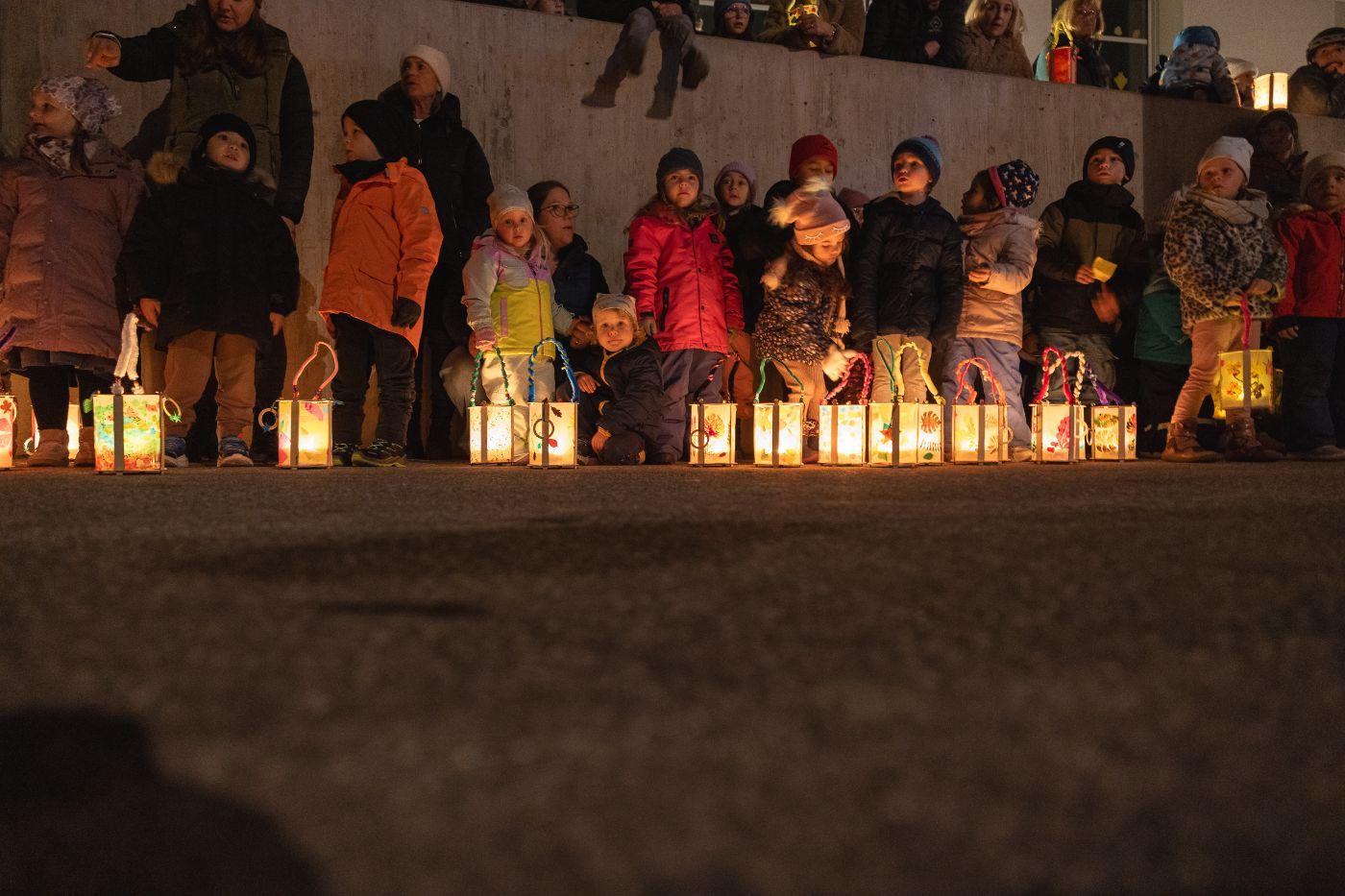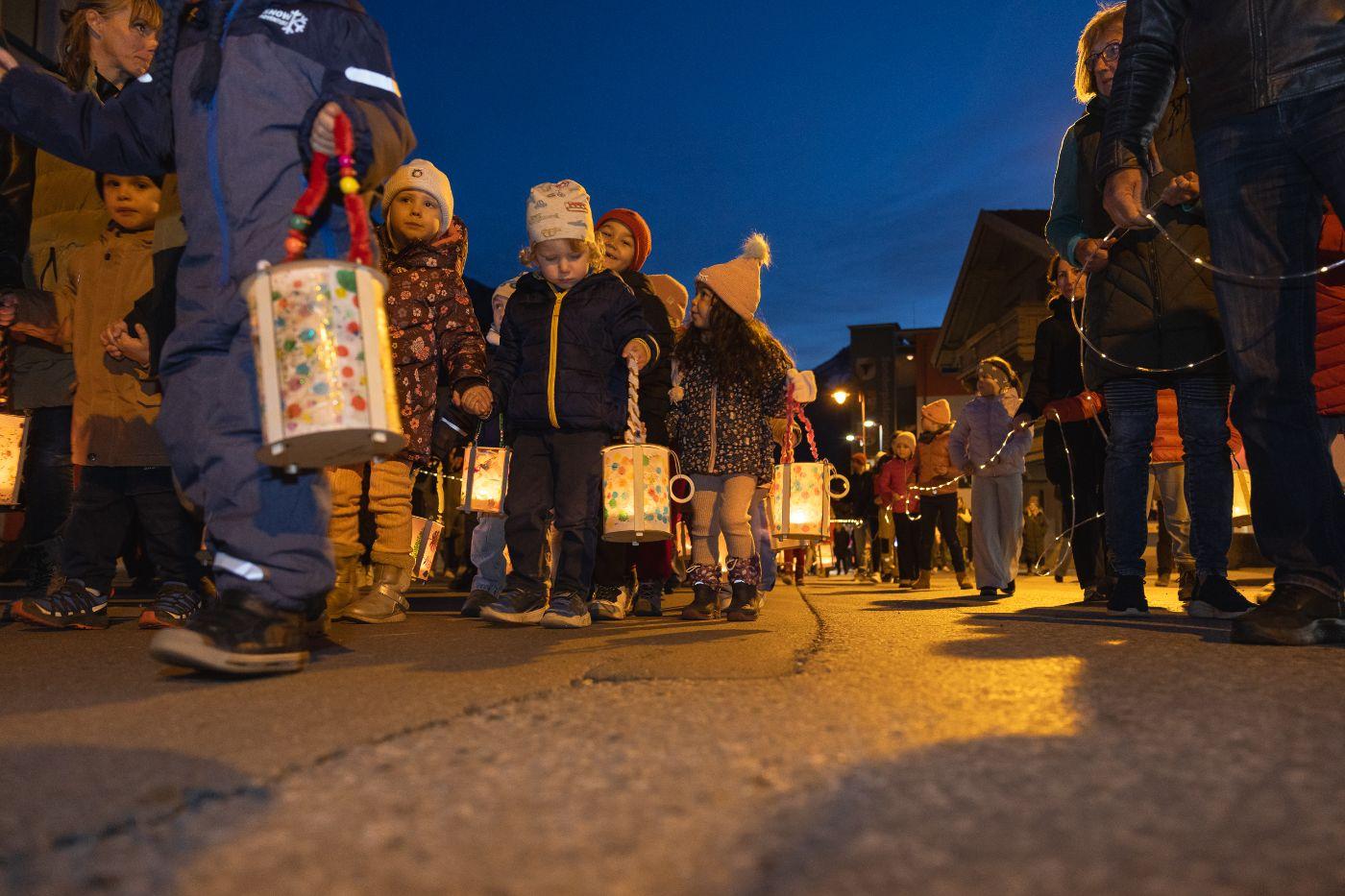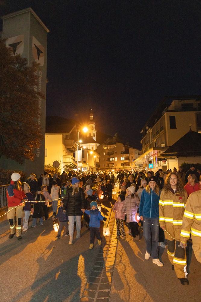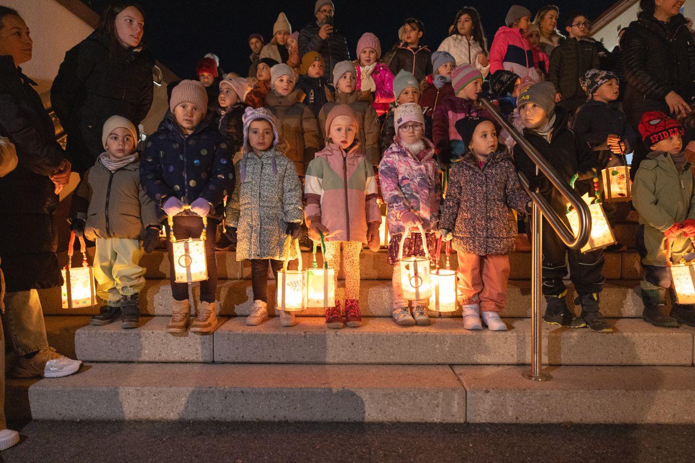 Die 146 Kinder des Kindergartens folgten dem Hl Martin hoch zu Ross, welcher den Zug durchs Dorf anführte. Die Kindergartenkinder gingen den Familien begeistert, mit leuchtenden Augen und leuchtenden Laternen voraus. Begrenzt wurden unsere Kindergartenkinder durch eine Lichterkette. Viele Familien mit kleineren Kindern und Schulkindern folgten dem Zug mit ihren Laternen.