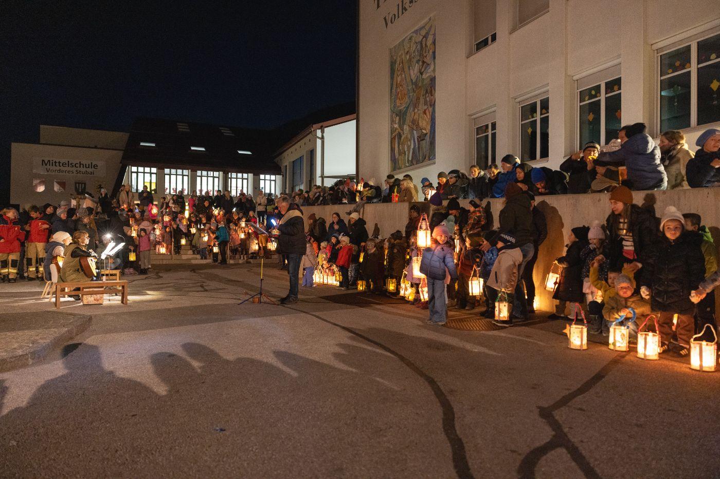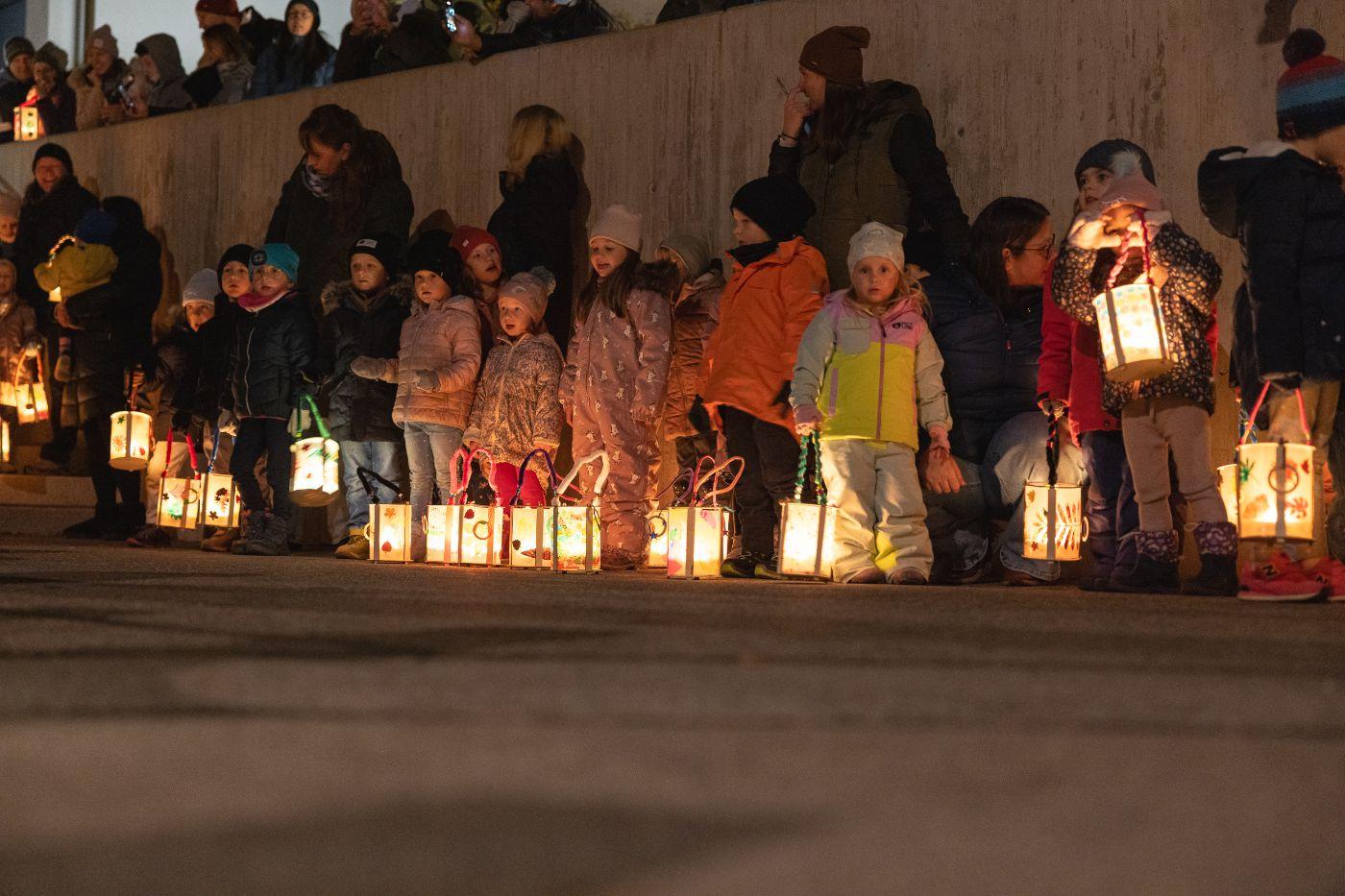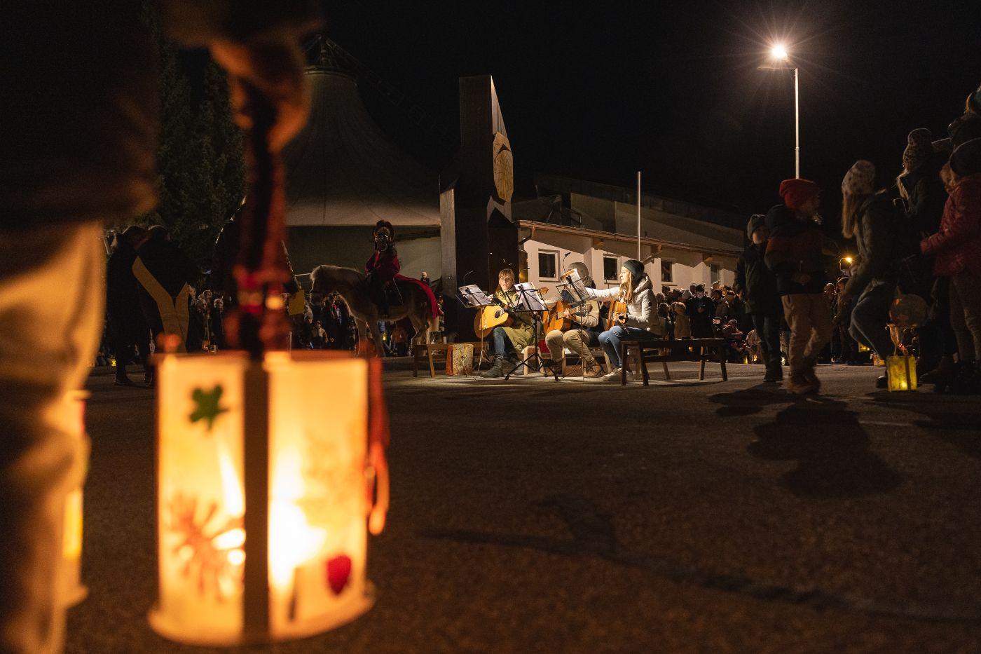 Die 146 Kinder des Kindergartens folgten dem Hl Martin hoch zu Ross, welcher den Zug durchs Dorf anführte. Die Kindergartenkinder gingen den Familien begeistert, mit leuchtenden Augen und leuchtenden Laternen voraus. Begrenzt wurden unsere Kindergartenkinder durch eine Lichterkette. Viele Familien mit kleineren Kindern und Schulkindern folgten dem Zug mit ihren Laternen.